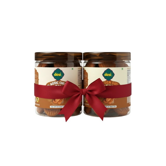 Get the best of both worlds with The Desi Box’s Classic Cheeni and Golden Gud Thekua Combo Pack.