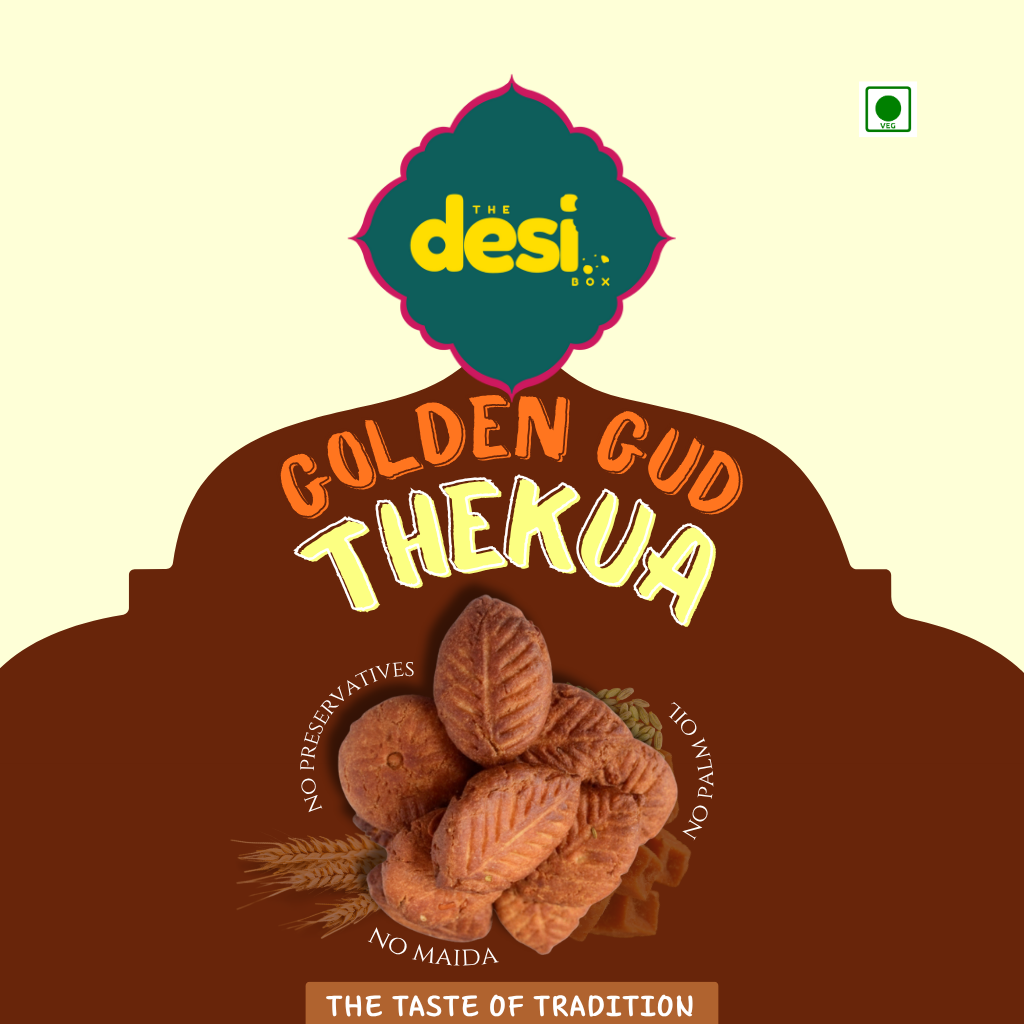 Experience the real taste of tradition with Golden Gud Thekua from The Desi Box – a healthy, handmade snack that blends purity, nostalgia, and flavor. This Bihari delicacy is crafted with whole wheat flour, jaggery (gud), and pure desi ghee, giving it a rich, wholesome texture and natural sweetness. Made just like it’s prepared at home during Chhath Puja, each thekua is slow-cooked to golden perfection – crisp on the outside, soft inside, and bursting with the aroma of ghee, cardamom, and saunf (fennel seeds).